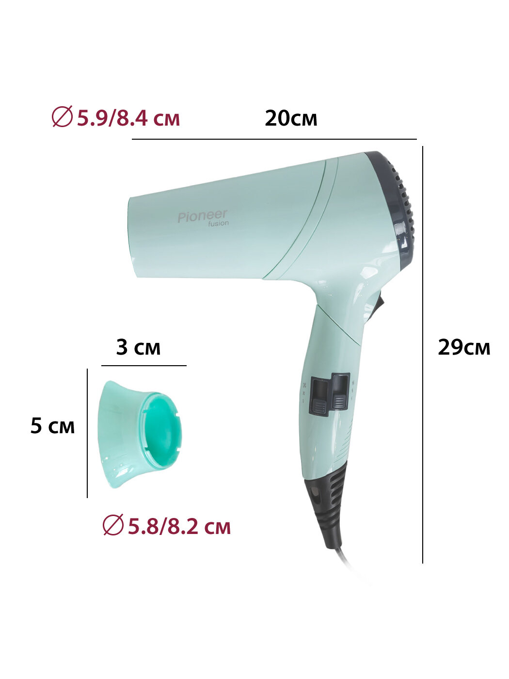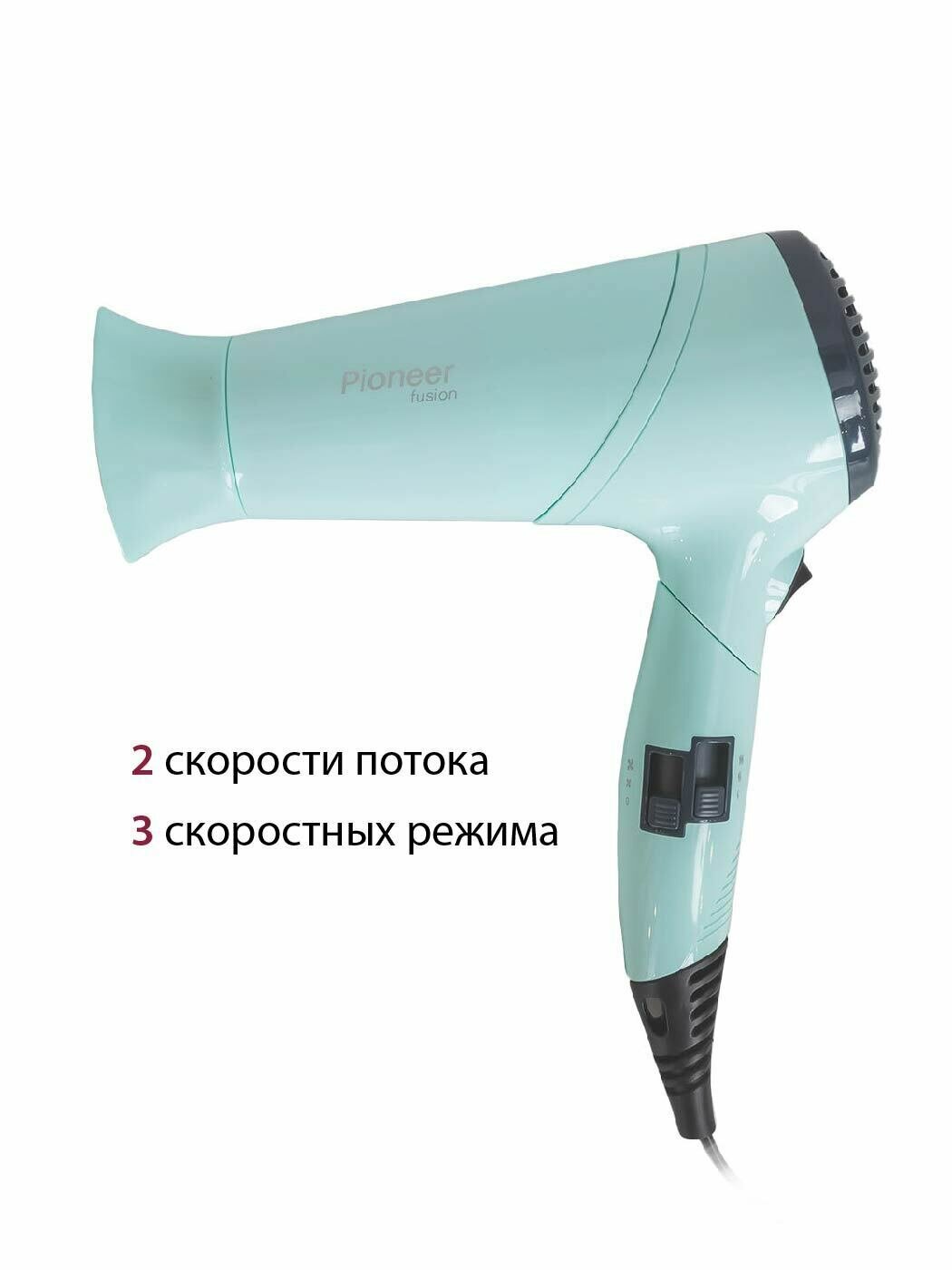 Фен для волос Pioneer HD-2001DC со складной ручкой и насадкой-концентратором, 2 скорости, 3 температурных режима, 2000 Вт, бирюзовый, светло-синий