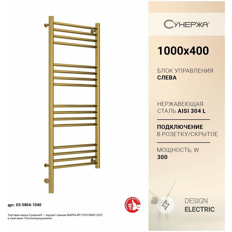 Полотенцесушитель электрический Сунержа Богема 3.0 прямая, 1000x400, МЭМ левый, шампань 020-5804-1040