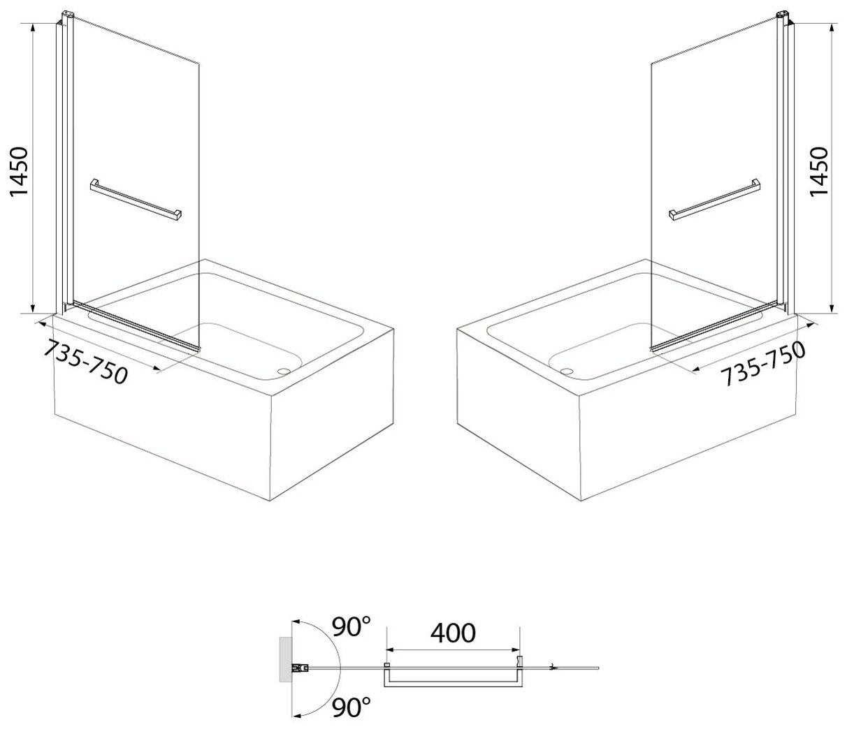 Шторка на ванну Iddis Slide черный алюминиевый профиль 75х145 см SLI5BS7i90