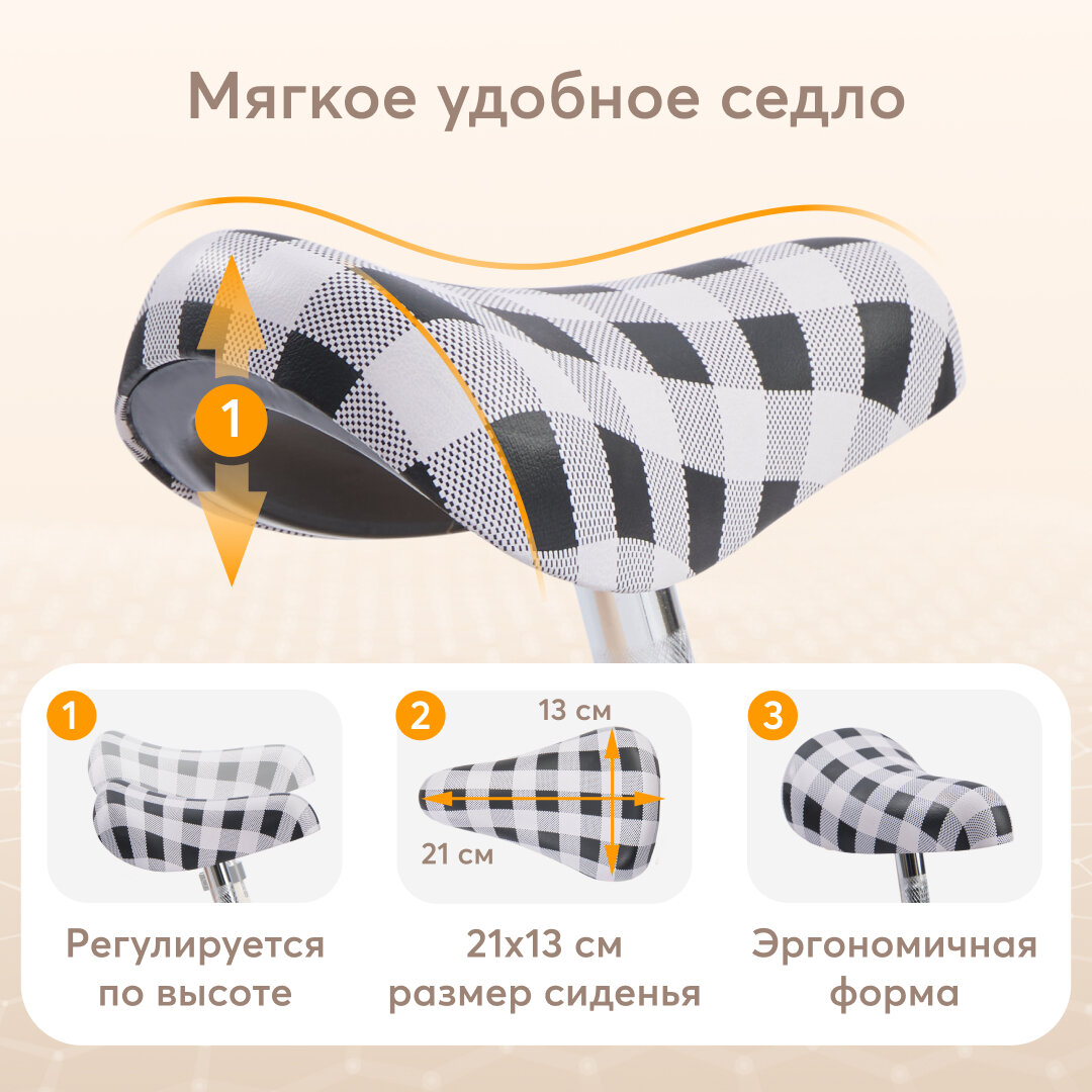 | Регулируется по высоте | руль, седло, Высота сиденья: регулируется от 28 до 42 см Высота руля: регулируется от 52 до 58 см |