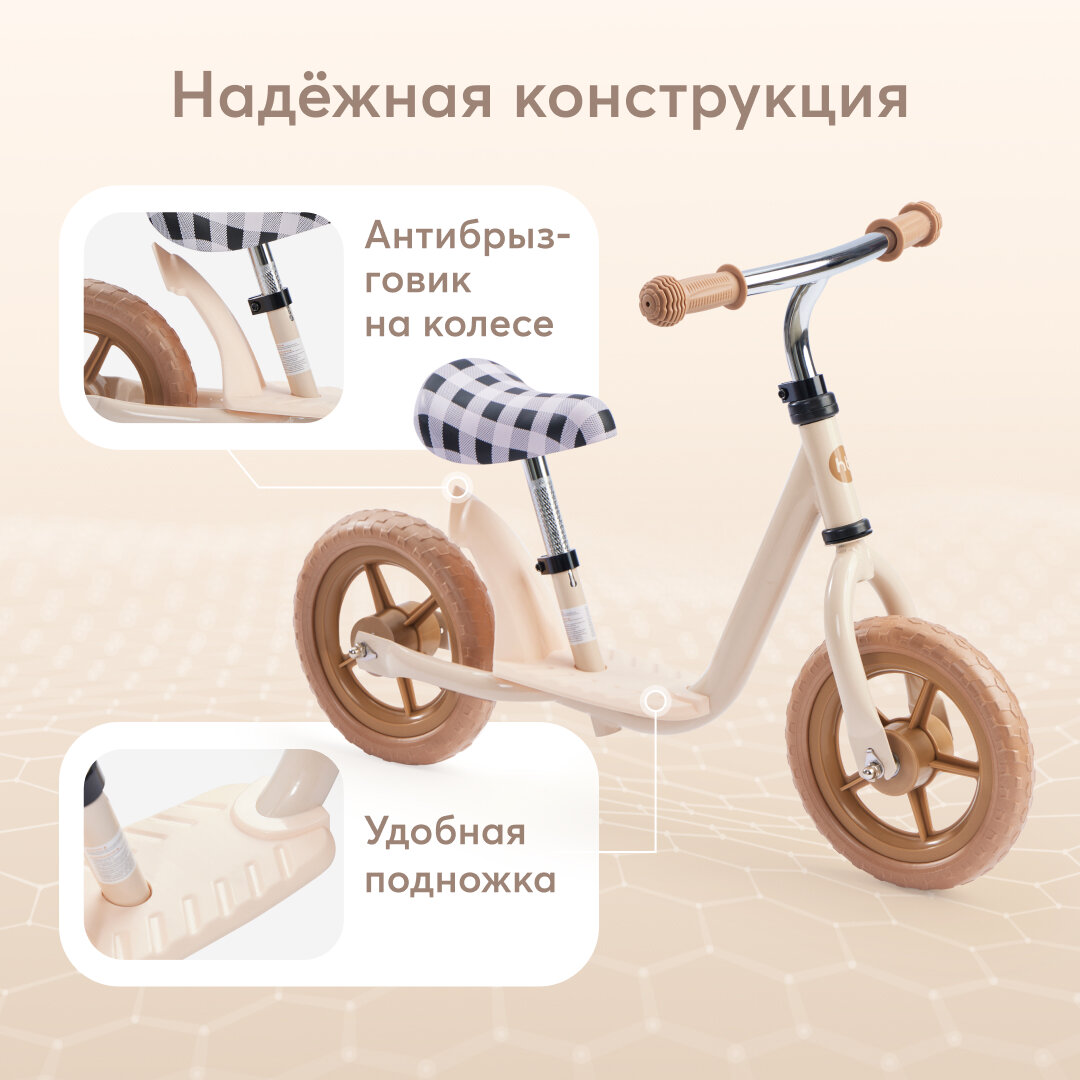 Беговел Happy Baby двухколесный JOURNEY детский от 2 лет, рост 50-100, с регулировкой высоты руля и сиденья, со стикерами, бежевый