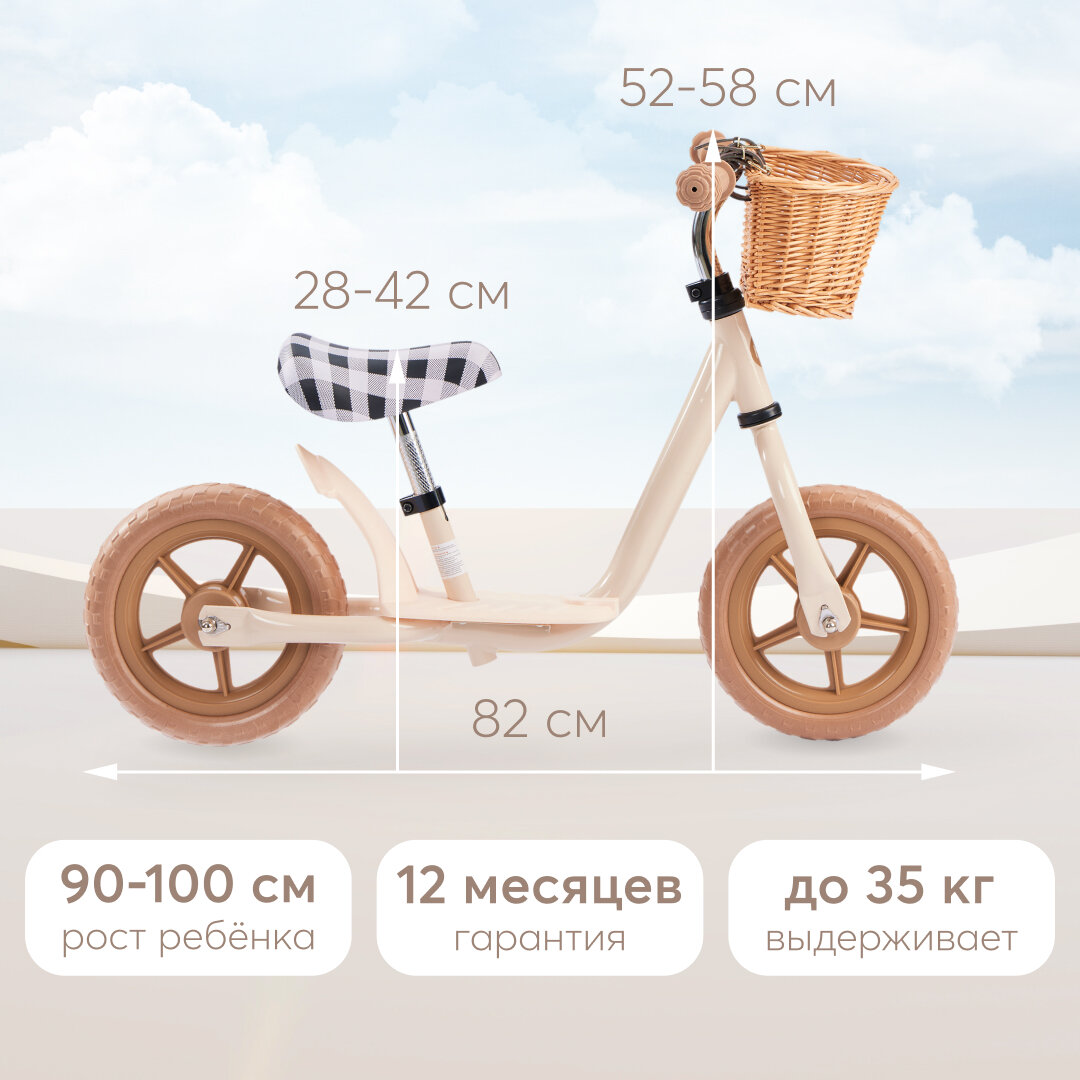 50028, Беговел детский от 2 лет двухколесный Happy Baby JOURNEY, рост 90-100, с регулировкой руля и сиденья, кремовый