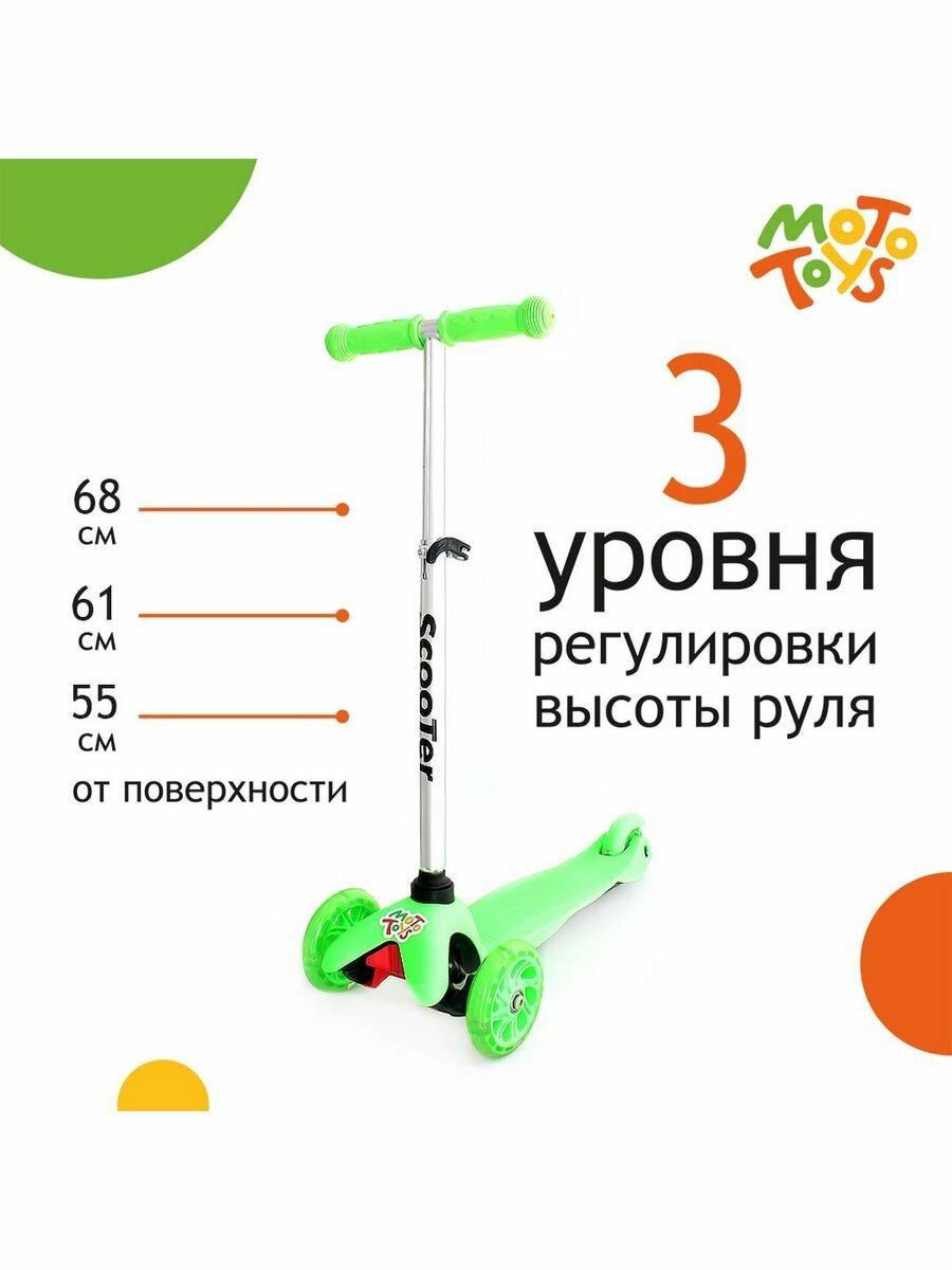 Самокат 3-х колесный 0073-PU (подсветка колес) зеленый MotoToys 0073-PU-KR4