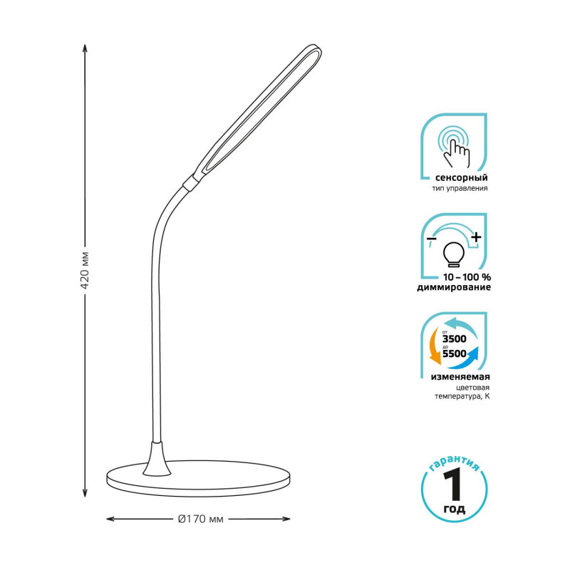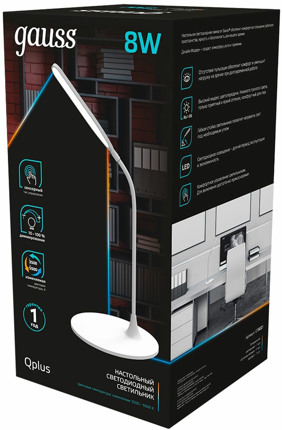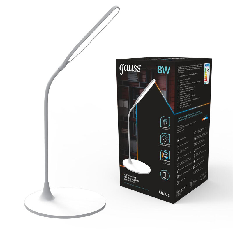 Настольная лампа Gauss Qplus GTL502 8W 500lm 3500-5500K 170-265V белый диммируемый LED 1/12
