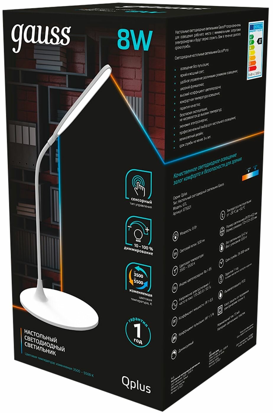 Светильник настольный Gauss Qplus модель GTL502 8W 500lm 3500-5500K 170-265V белый диммируемый LED 1/12