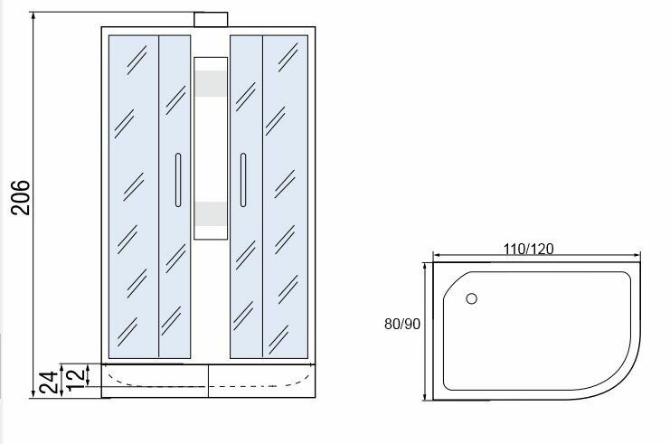 Душевая кабина 120x90 Б/К 120/90/24 МЗ R
