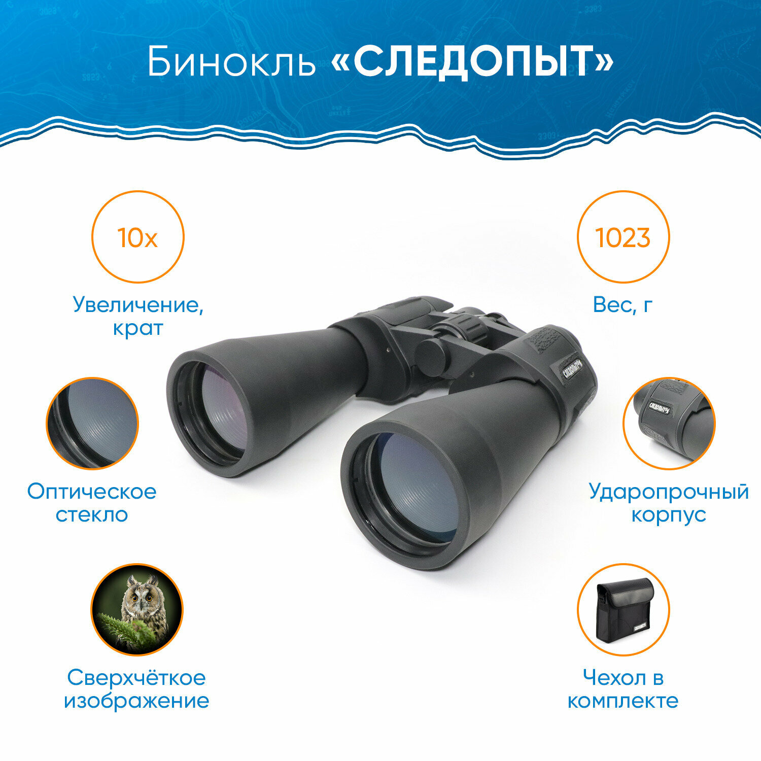 Бинокль туристический 10х50 "следопыт", черный, 175*181*60 мм, 891 г, в чехле / Бинокль охотничий / Бинокль мощный / Бинокль профессиональный