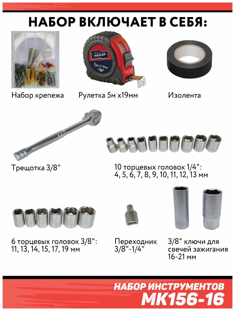 Набор инструментов Дед Макар МК156-16 156 предметов 00-00015623 интересное: