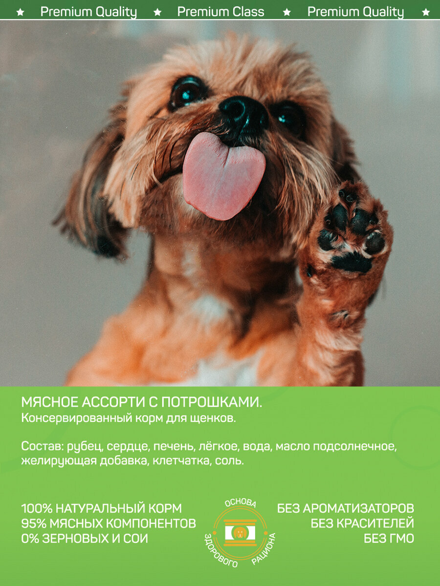 Четвероногий Гурман влажный корм для щенков всех пород, с потрошками 100 гр (10 шт)