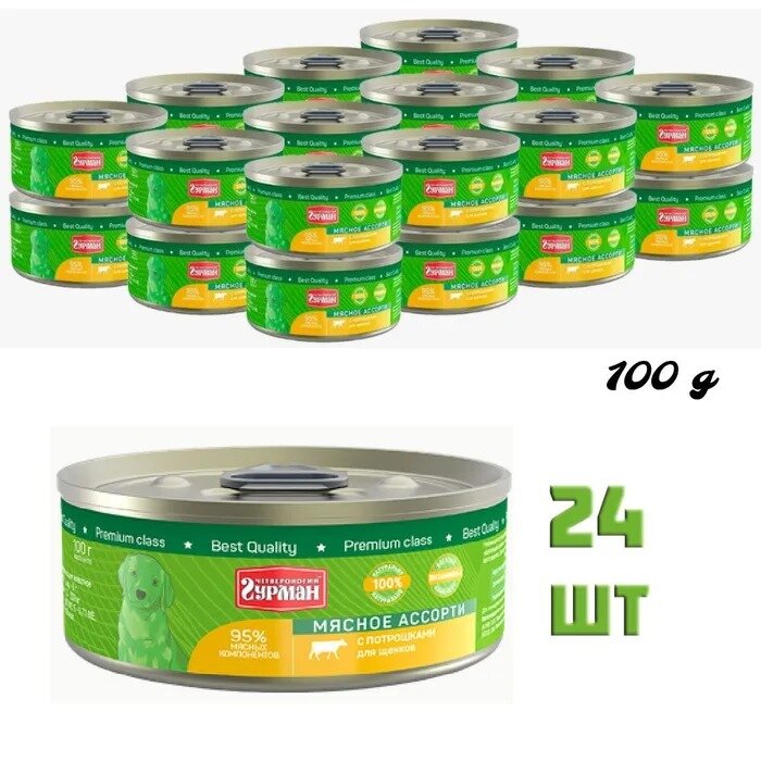 Четвероногий Гурман Мясное ассорти консервированный корм с потрошками для щенков - 100 г (24 шт)
