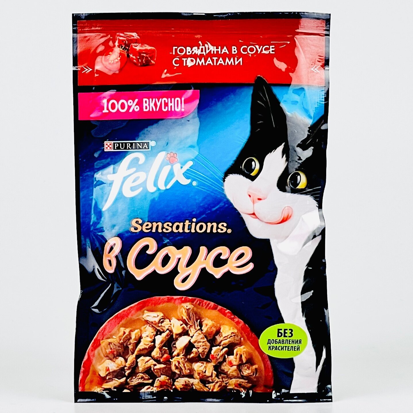 Felix Sensations влажный корм для взрослых кошек, говядина в соусе с томатами (26шт в уп) 75 гр