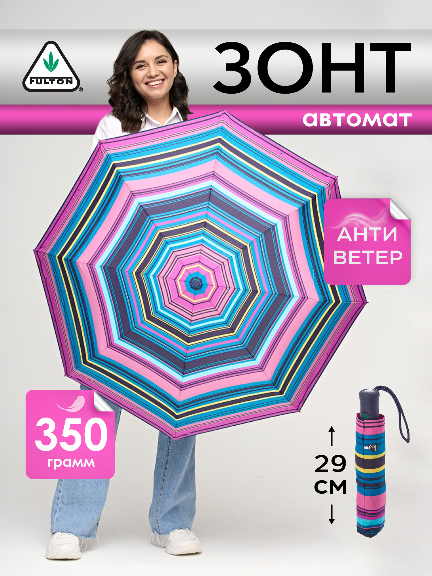 СохранитьЗонт Fulton R348-4100 StripePatternPurple, мультиколор, женский интересное: