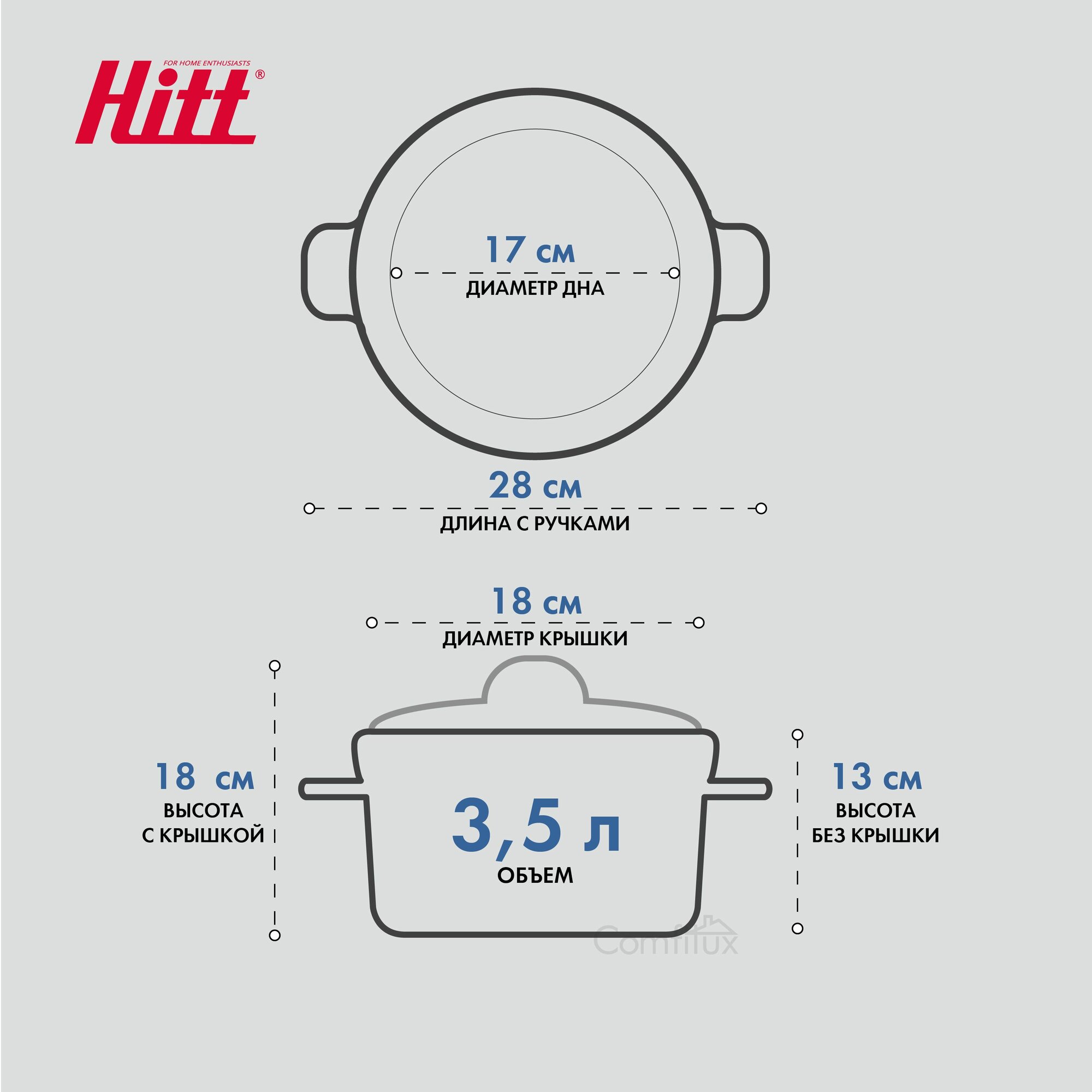 Кастрюля эмалированная 3.5 литра Hitt, с крышкой, для индукционных плит