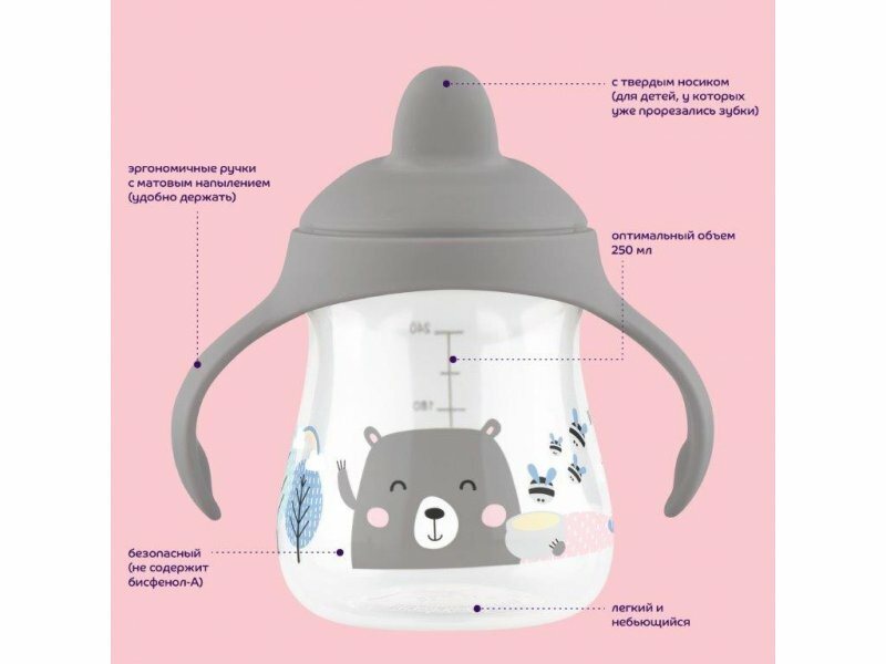 Поильник Lubby непроливайка с твердым носиком, матовый, 250мл, от 6 месяцев интересное: