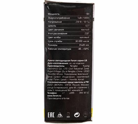 Типы/Лампочки/Декоративные Feron Лампа светодиодная Feron E27 1W желтая LB-376 25927
