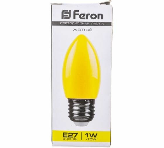 Лампа светодиодная FERON LB-376 арт. 25927, C35 (свеча) 1W E27 (желтый) 230V