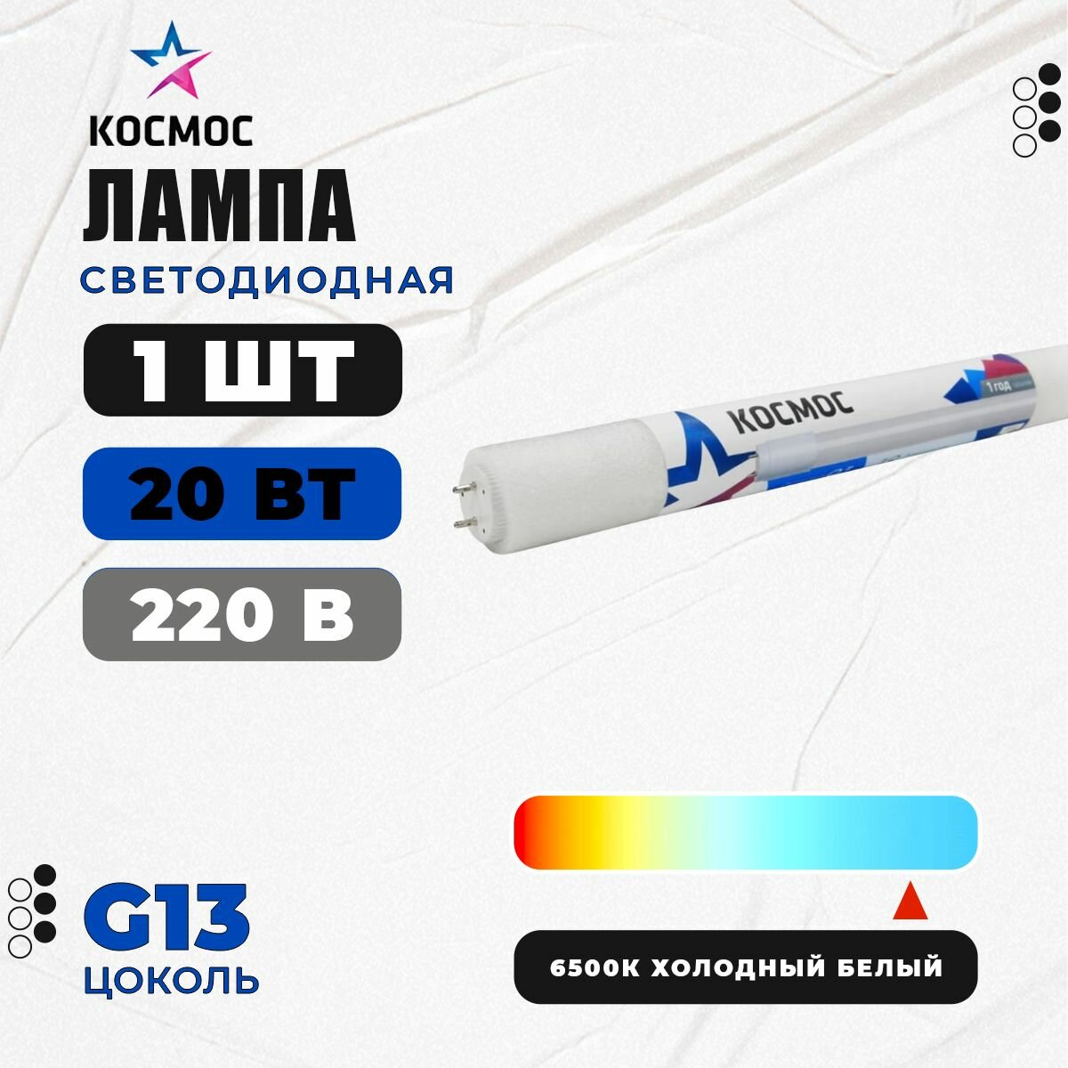 Лампа светодиодная Космос 20 Вт G13 Т8 6500 К холодный белый свет Lksm_LED20wG13T865GL 1240230 интересное: