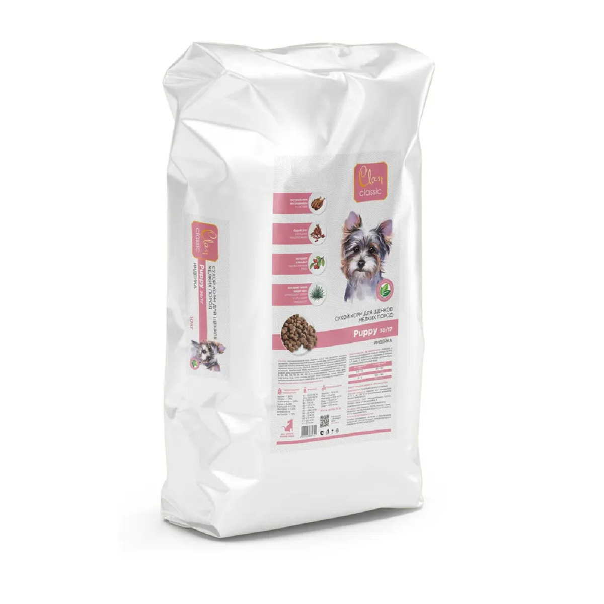 Корм Clan Classic Puppy 30/17 для щенков малых пород, с индейкой, 10 кг