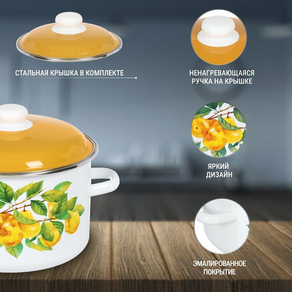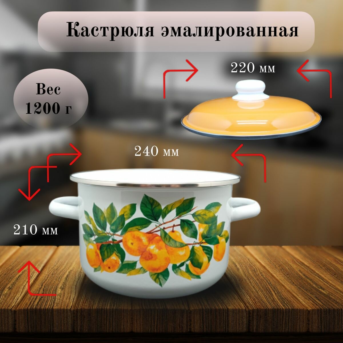 Кастрюля эмалированная СтальЭмаль Вкусный компот с крышкой, 5,5 л