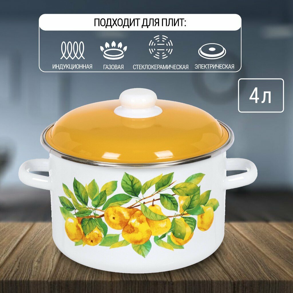 Кастрюля эмаль 4.0Л ЦИЛ грушевый САД белосн 6RD201М (4) череповец