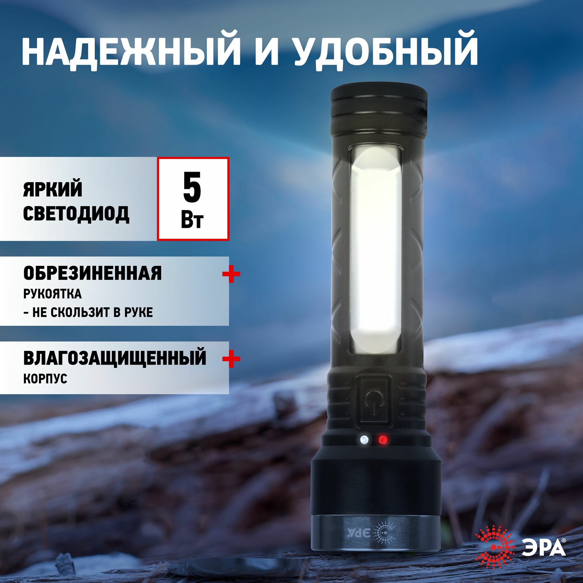 Фонарь ручной светодиодный ЭРА UA-501 / Карманный фонарик кемпинговый туристический мощный аккумуляторный влагозащищённый