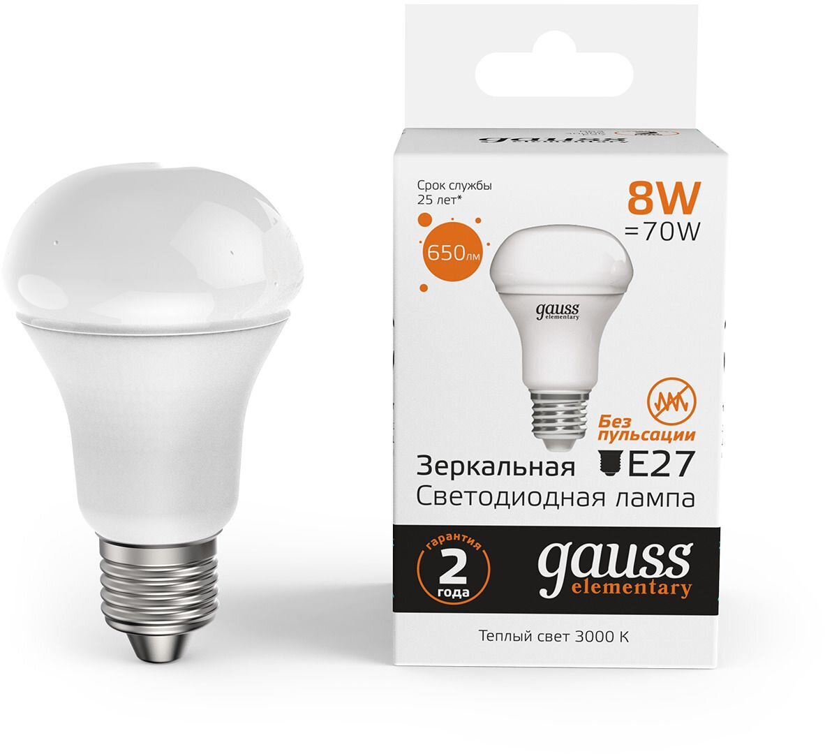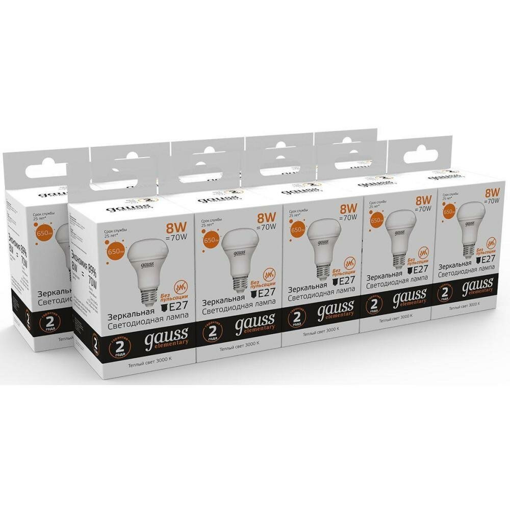 Упаковка ламп 10 штук Gauss Elementary R63 8W 650lm 3000K Е27 LED 1/10/50