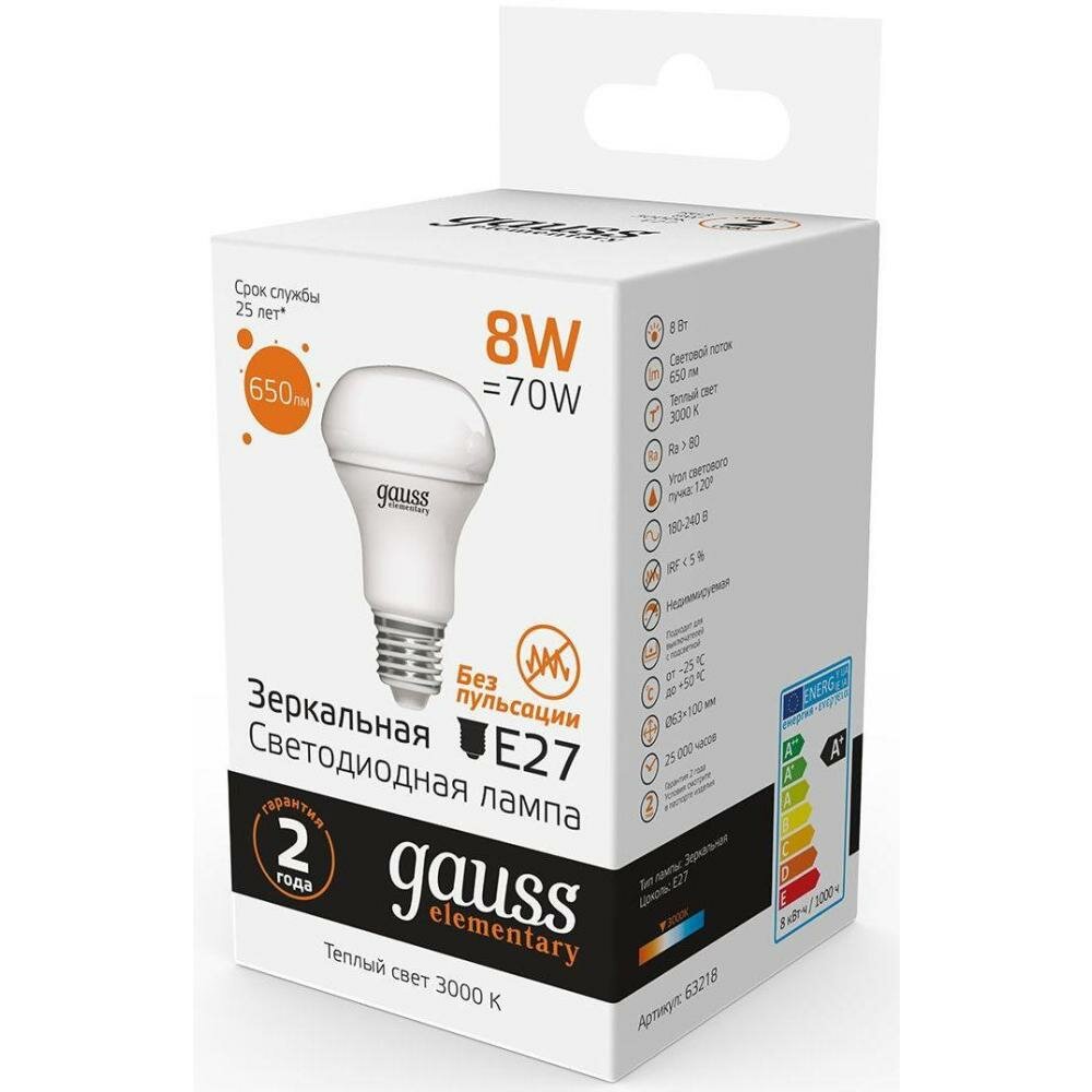 Gauss Лампа Elementary R63 8W 650lm 3000K Е27 LED 1/10/50 63218