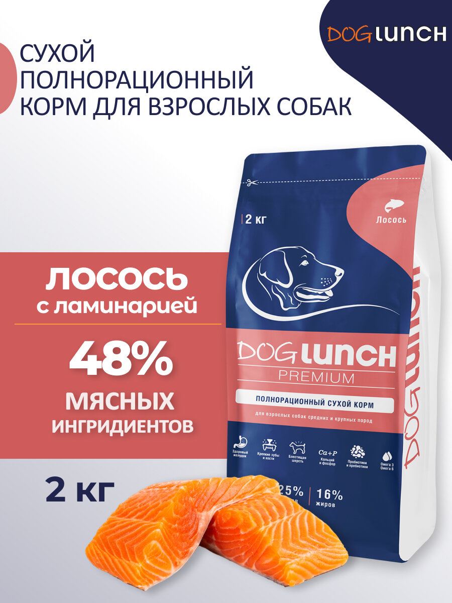 Dog Lunch Премиум сухой корм для собак средних и крупных пород с лососем 2кг
