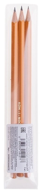 Набор чернографитных карандашей KOH-I-NOOR "1696", 3 шт, Н, HB, В, заточенные (1696003040TE)