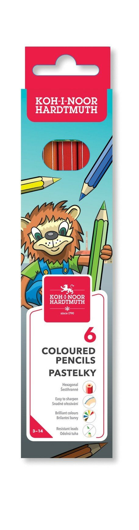 Купить Карандаши цветные 6 цветов Koh-I-Noor Lion (L=175мм, D=7мм, d=2.8мм) картон (3551006034KS)