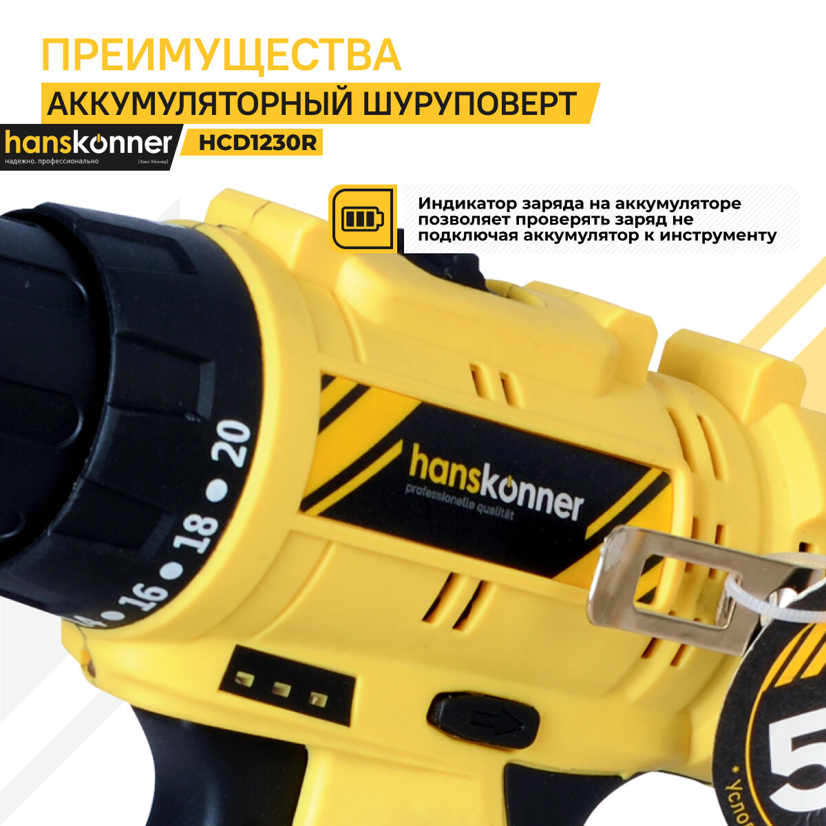 Аккумуляторная дрель-шуруповерт Hanskonner HCD1230R