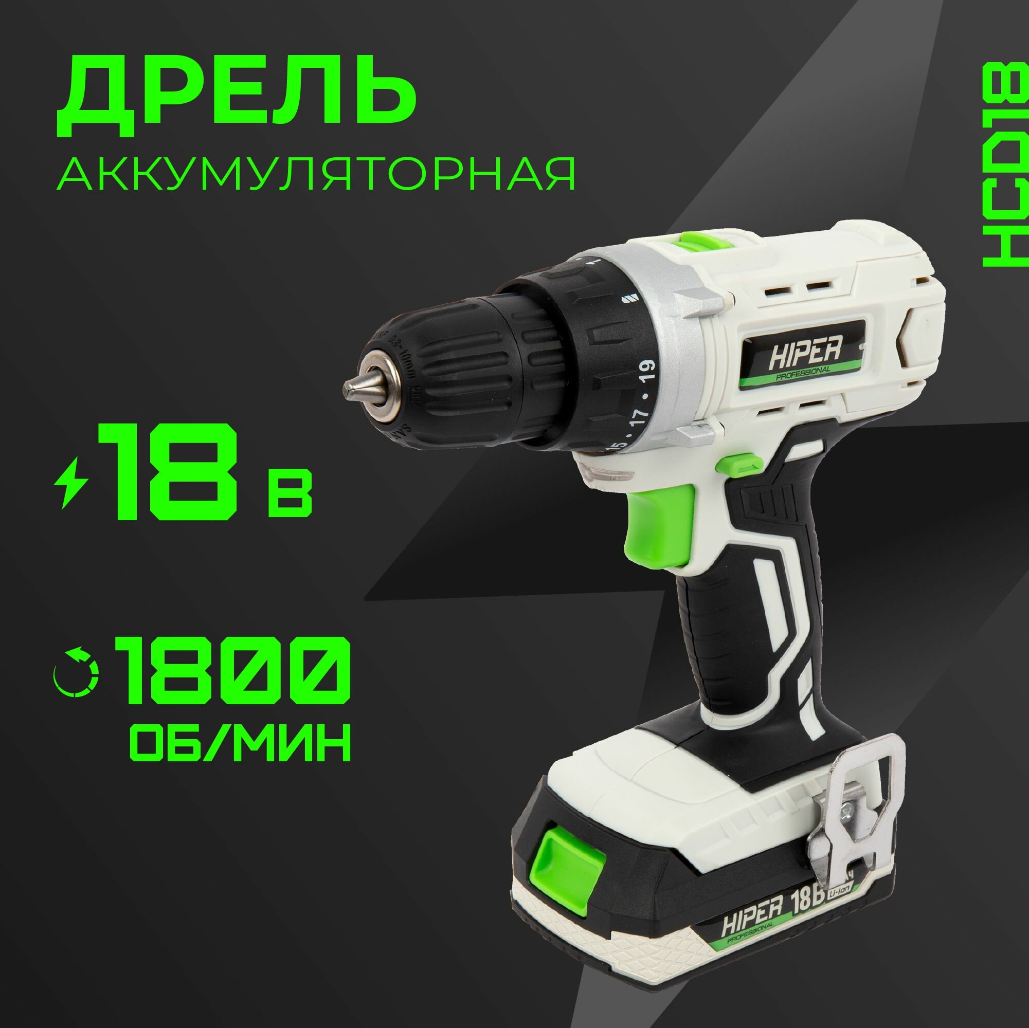 Купить Дрель-шуруповерт аккумуляторная HIPER HCD18, 1 АКБ, ЗУ в комплекте, быстрозажимной патрон, гарантия 5 лет.