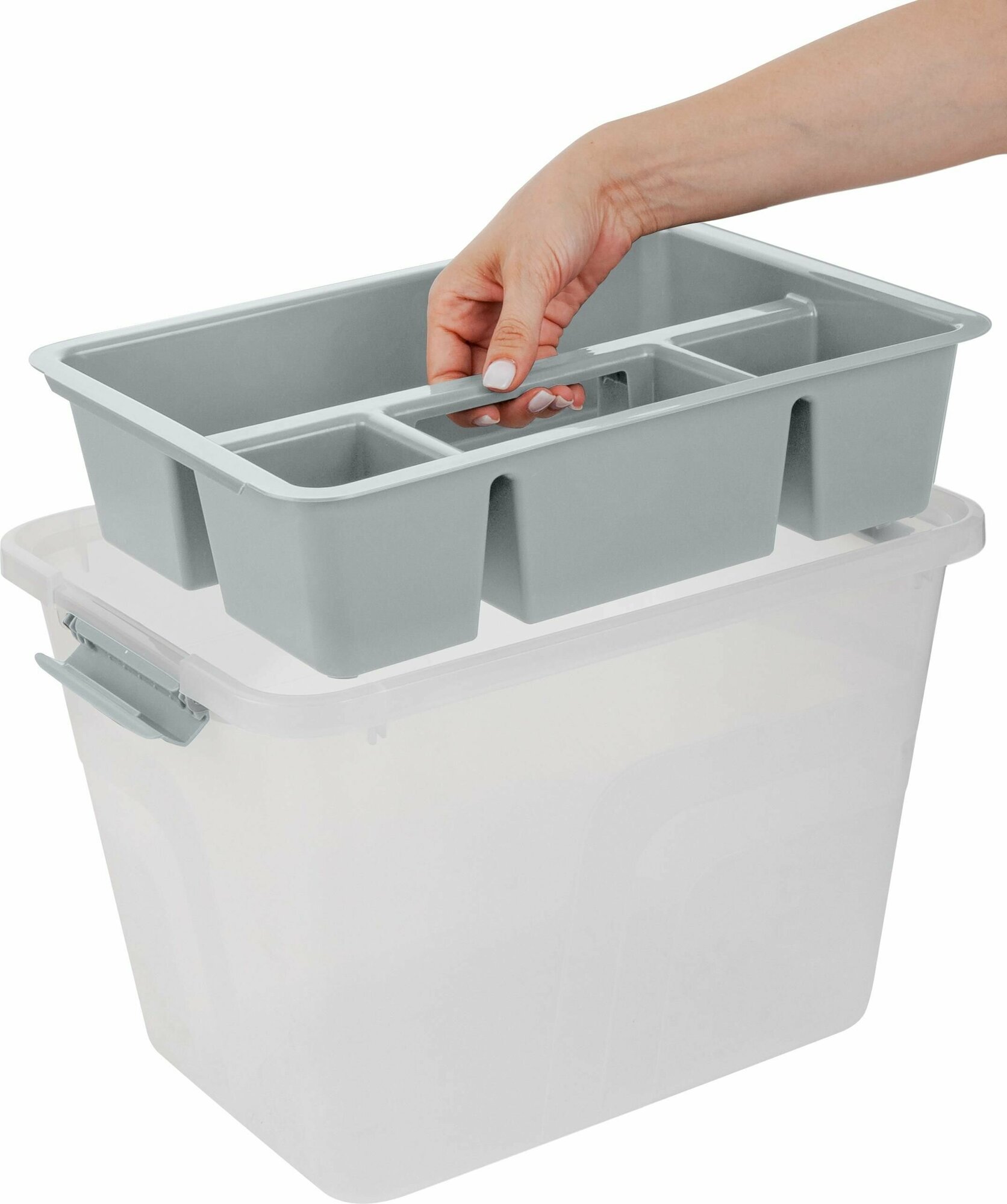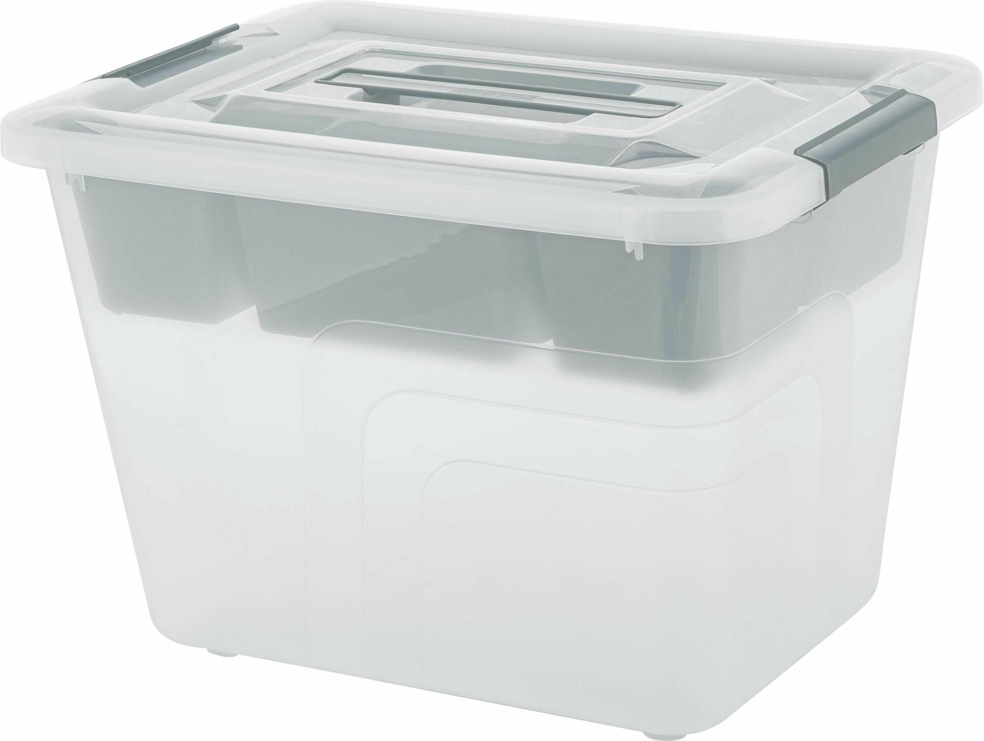Ящик для хранения Plast Team Bergen, с лотком и ручкой, 18 л, прозрачный