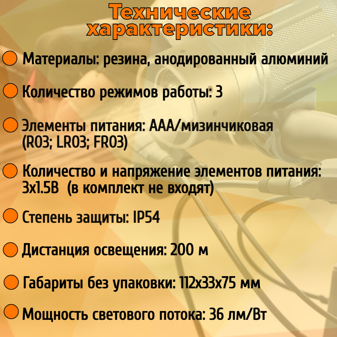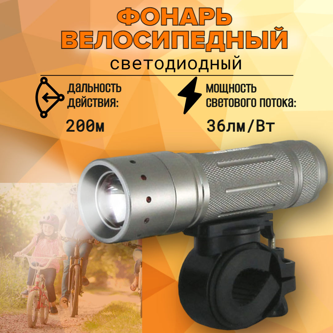 СохранитьФонарь Велосипедный светодиодный с креплениями, с возможностью фокусировки, IP54, 1 LED 5 Вт, 36 лм/Вт, 3*AAA, 200 метров, TDM интересное: