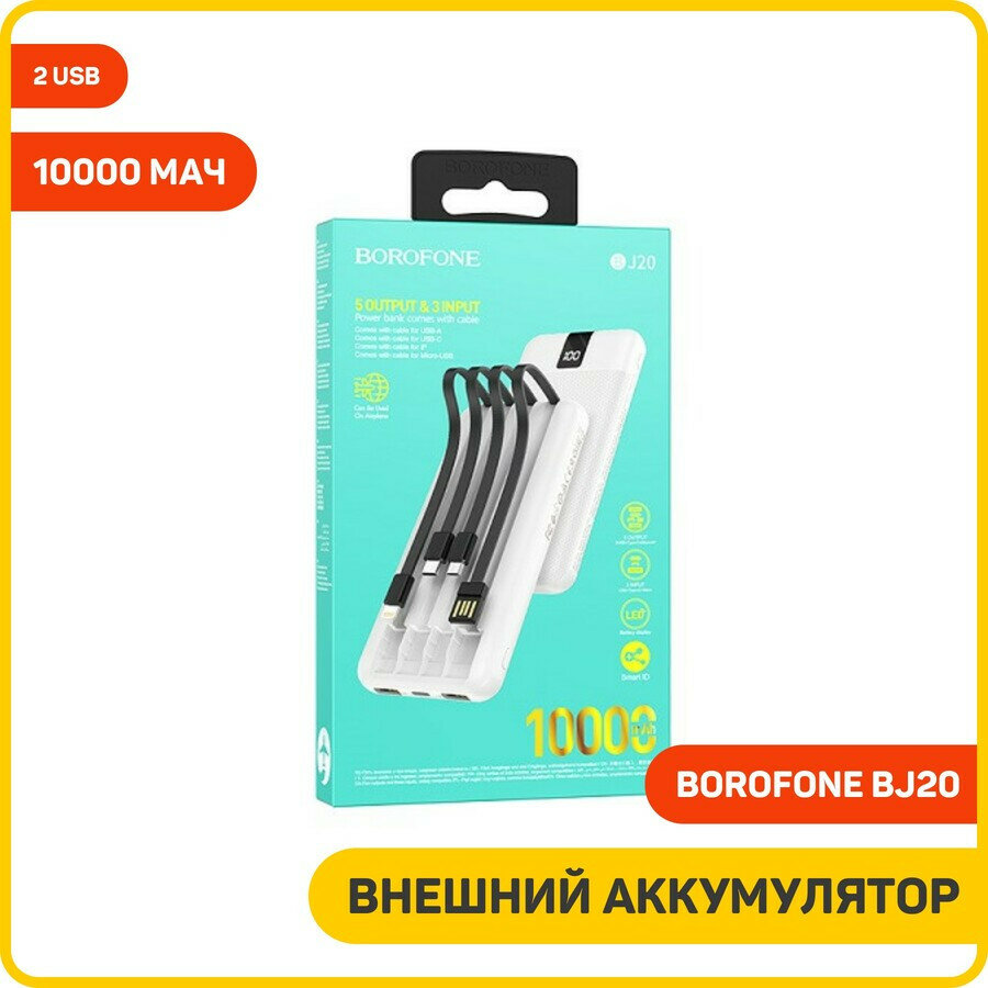 Внешний аккумулятор Borofone BJ20 (встроенный кабель Lightning/MicroUSB/Type-C/USB Type-A) (10000 мАч) белый
