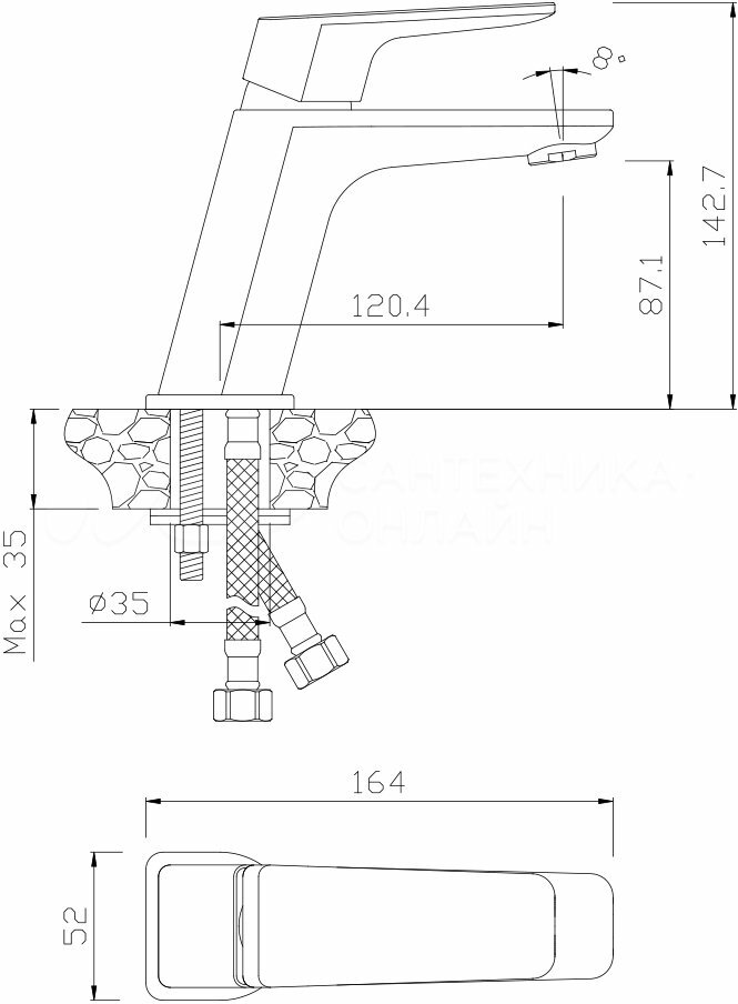 Смеситель для умывальника OLIVE.S ARAGON 10100AN монолитный