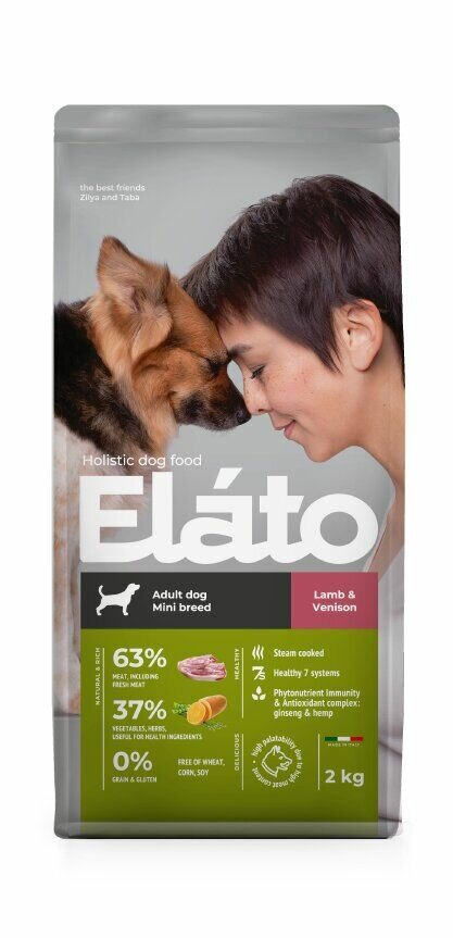 Elato Holistic корм для взрослых собак мелких пород с ягненком и олениной, 2кг