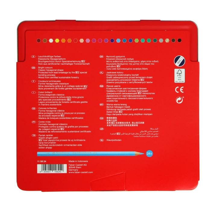 Карандаши цветные Faber-Castell, 24цв., заточен., метал. кор., 1 шт