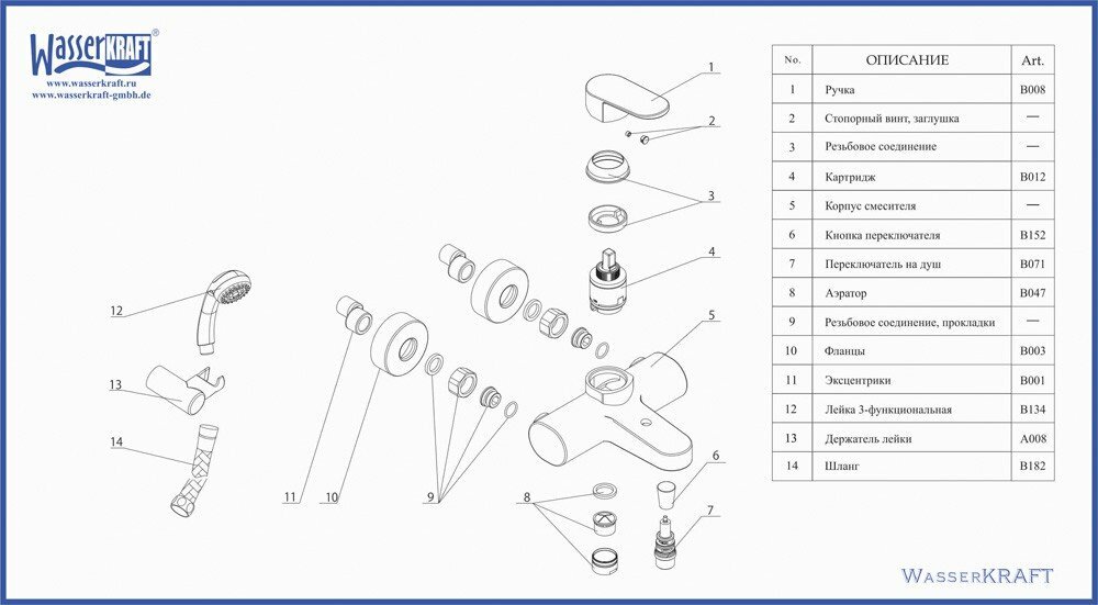Смеситель WasserKRAFT Donau 5301 для ванны с душем