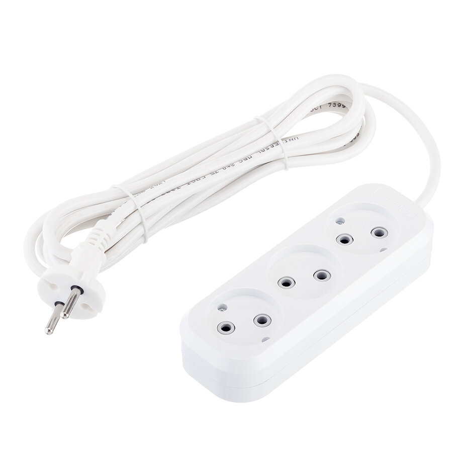 Удлинитель бытовой Düwi (32001 4) без заземления 1,5 м 10 А 220-250 В 2,2 кВт 3 розетки ПВС 2х0,75 мм2 IP20 белый