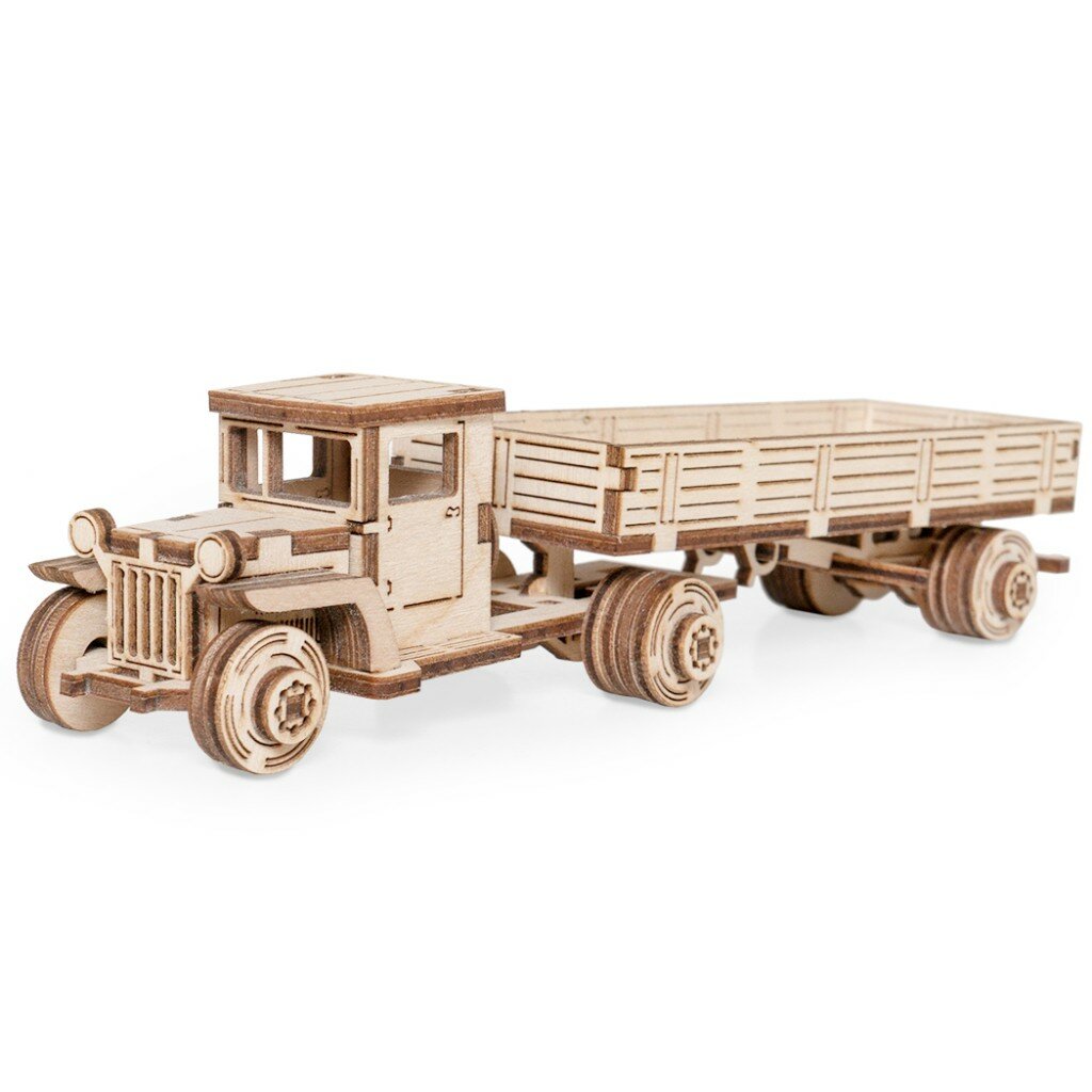 Деревянный Конструктор 3D Грузовичок ЛТ с прицепом 078