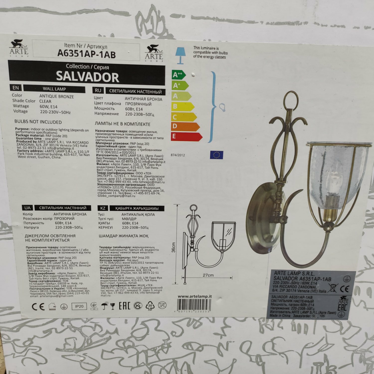Ниже Вы можете прочитать отзывы на Светильник настенный бра Arte Lamp A6351AP-1AB Salvador, ознакомится с подробными характеристиками, посмотреть интересные обзоры и фотографии на Светильник настенный бра Arte Lamp A6351AP-1AB Salvador.