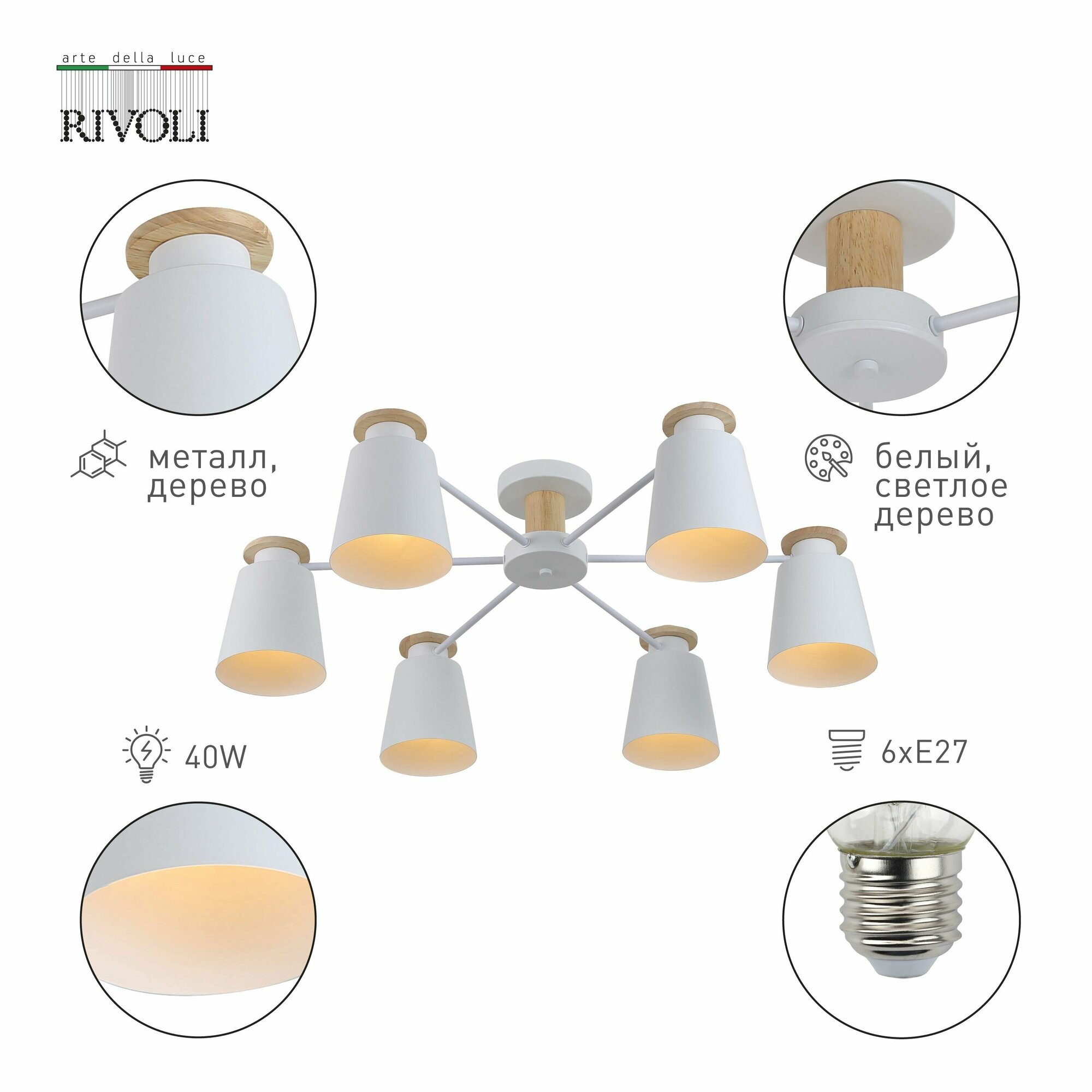 Люстра Rivoli Adna 9112-306 6 * Е27 40 Вт модерн