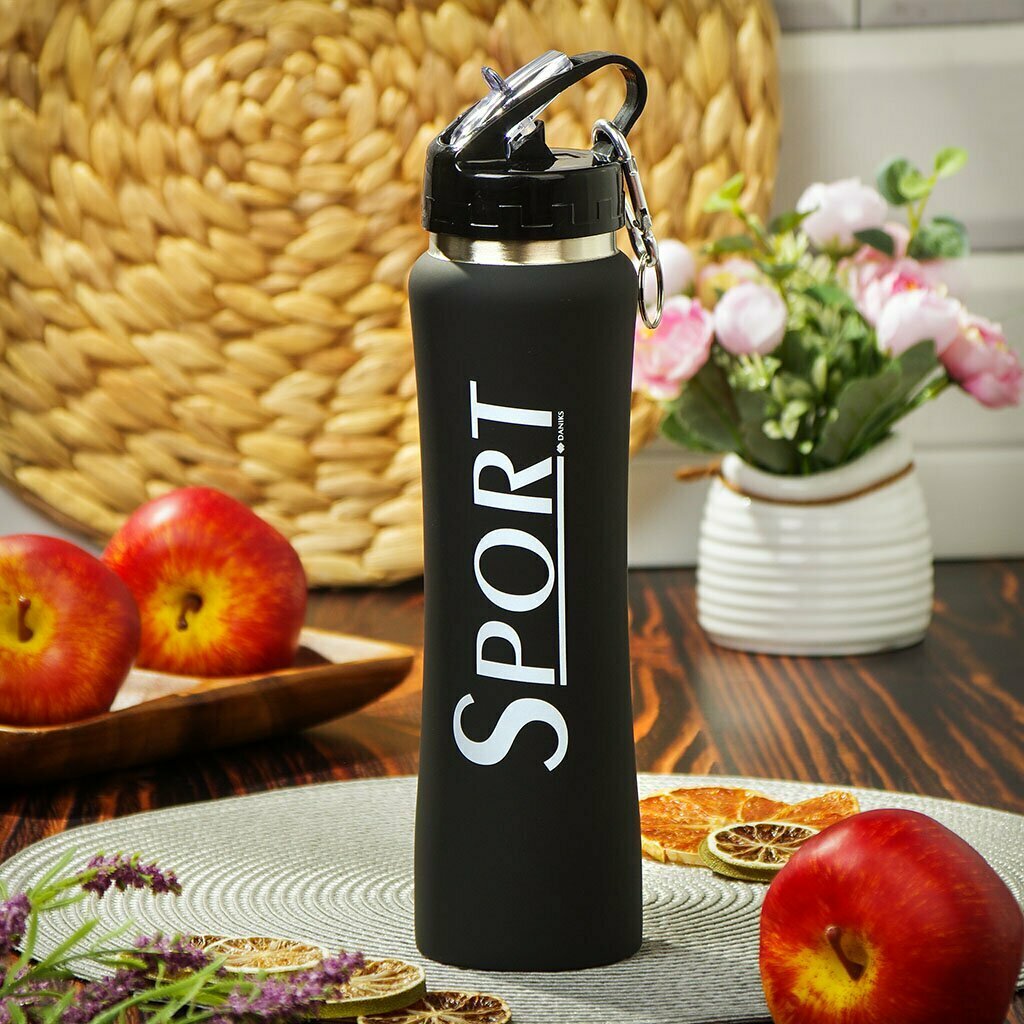 Термобутылка для спорта, 0.5 л, Daniks, Sl-50ye-419c черный, 332509