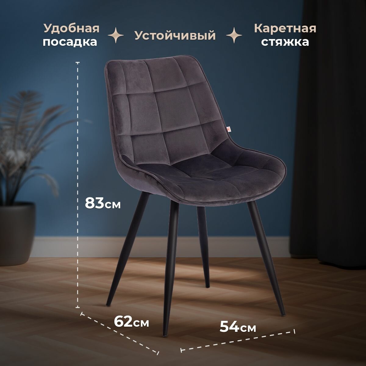 Стул обеденный TetChair ABRUZZO серый вельвет, ножки металл черный, T-15556