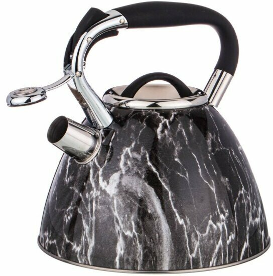 Чайник Agness Со Свистком, Серия Fantasy, 3,0 Л, Индукционное Капсульное Дно, Цвет: Чёрный Мрамор 93 937-040