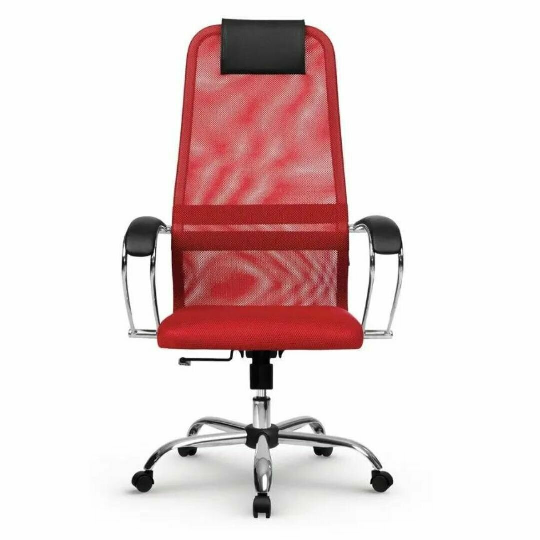 Офисное кресло Метта SU-BK-8, красный (ортопедическое компьютерное кресло для детей, для взрослых, для руководителей, анатомическое с подлокотниками, на колесиках), хром, сетка