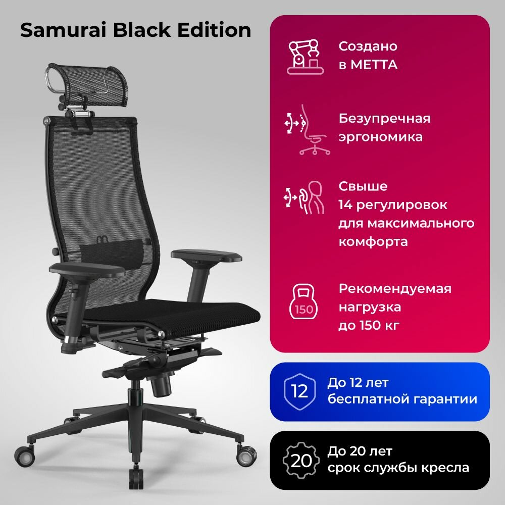 Кресло офисное метта «SAMURAI» Black Edition, сверхпрочная сетка, регулируемое, черное