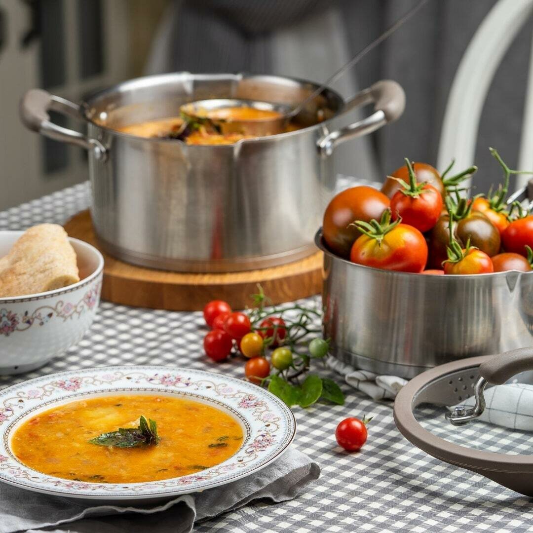 | Плюсы: | Кастрюли очень качественные, давно искала. Удобные ручки и особенно крышка с силиконовой вставкой: удобно сливать, ничего не убегает из кастрюли |