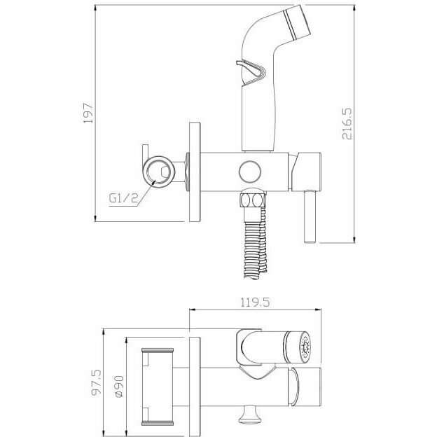 Смеситель Olives Sanitarias встраиваемый с гигиенической лейкой BALEAR (13142BL) хром